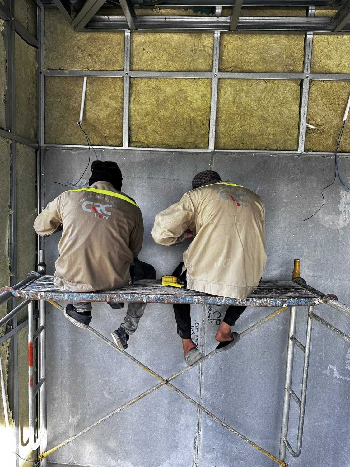 Vai trò: Tạo một bề mặt tường bên trong bằng phẳng và chắc chắn. Lớp này kết hợp với lớp số 2 tạo thành một hệ "sandwich" kẹp chặt lớp bông khoáng, giúp bức tường có độ cứng như tường xây.