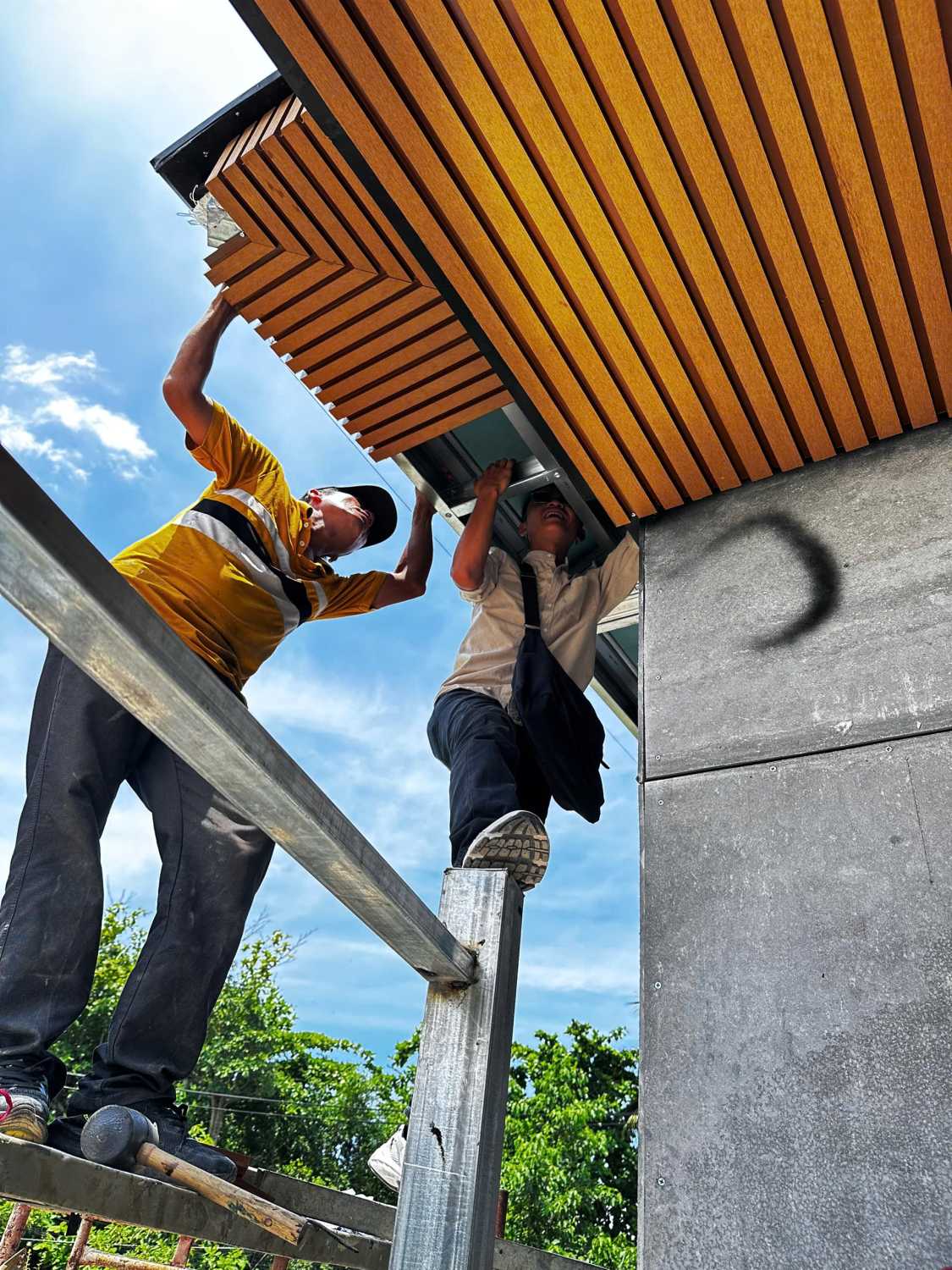 Vai trò: Đóng vai trò như một lớp "xương phụ" bên ngoài, tạo mặt phẳng ổn định để cố định lớp gỗ nhựa. Nó giúp phân tán đều các ngoại lực (như gió bão, va đập) lên hệ khung thép.
