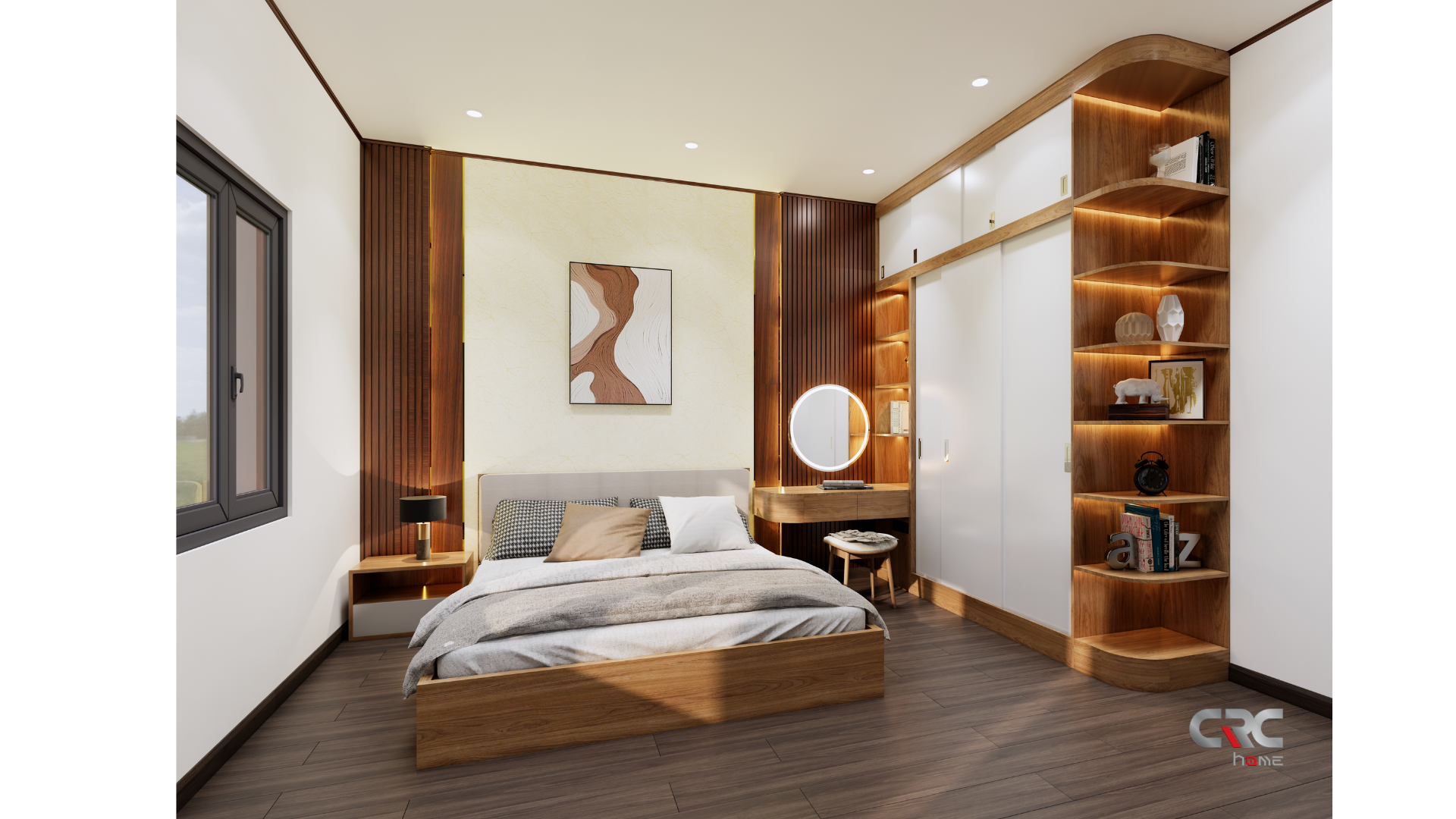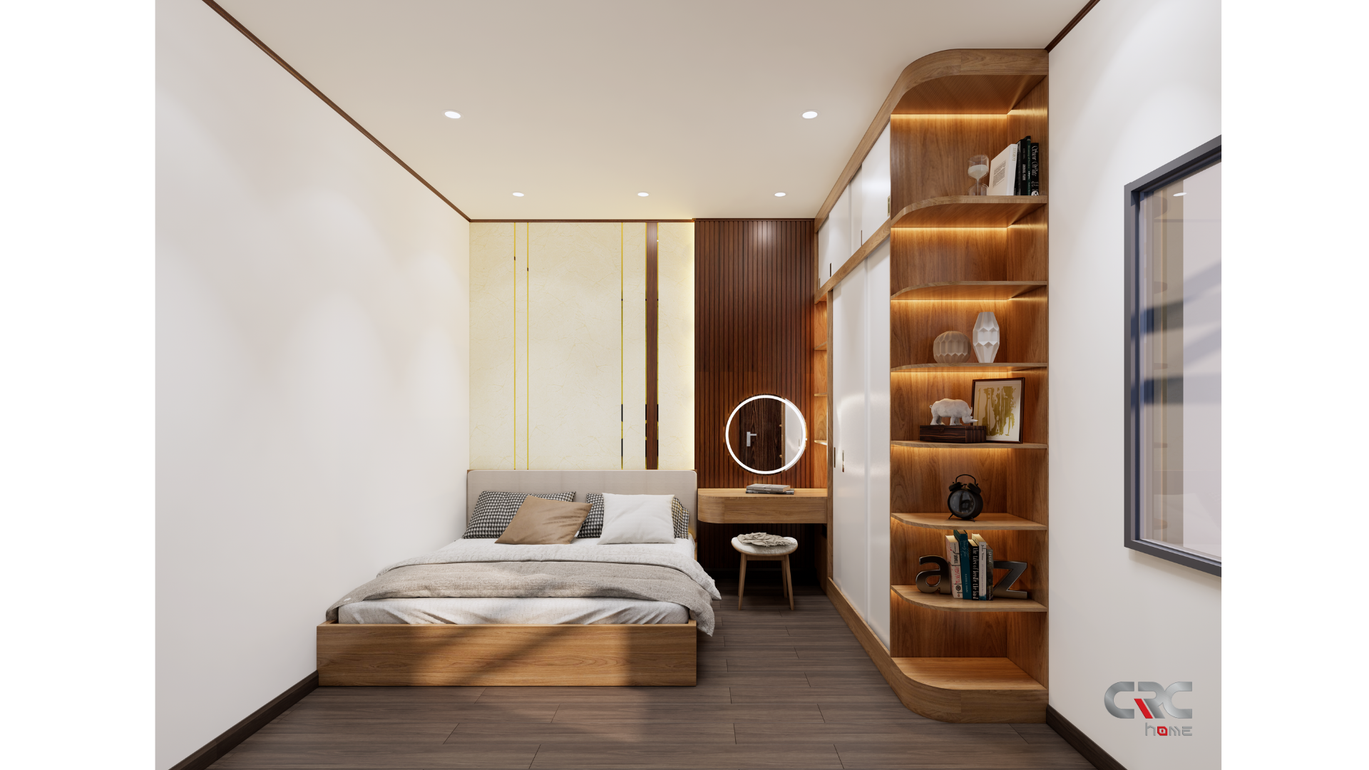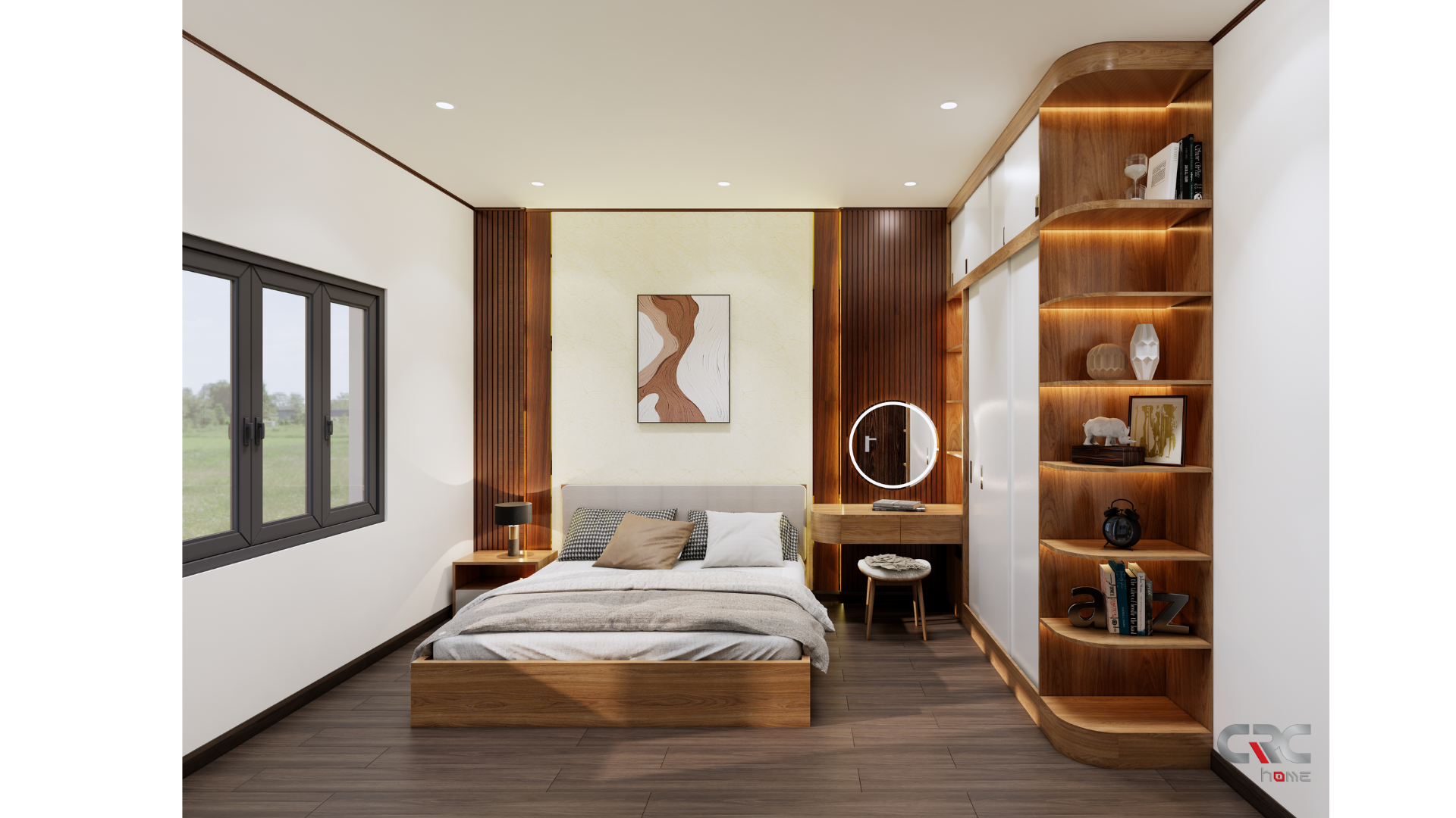 Mọi không gian đều được sắp xếp vừa đủ: một phòng khách nhỏ để bắt đầu những câu chuyện, một gian bếp ấm để giữ lửa yêu thương, và hai phòng ngủ yên tĩnh để mỗi người tìm thấy khoảng riêng của mình. Ánh sáng len lỏi qua từng ô cửa, mang theo cảm giác nhẹ nhàng, khiến ngôi nhà lúc nào cũng như đang “thở”.